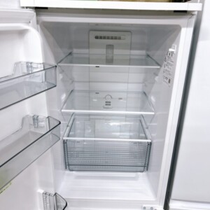 お預かりした冷蔵庫は、外観に目立つ傷やへこみは見られず、全体的にきれいな状態でした。庫内も清潔感があり、棚やケース類の欠品はありません。冷蔵・冷凍ともに動作確認済みで冷え具合も良好、使用感はあるものの年式相応の状態と判断しました。