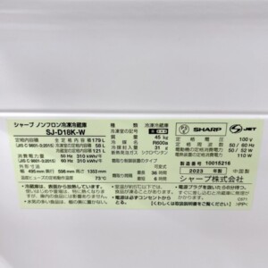 千葉県市川市にてシャープ 冷凍冷蔵庫 SJ-D18K-W(2023年製)を出張買取 きれいな状態のため適正価格で査定しました