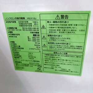YRZ-F15Jは156Lクラスで一人暮らし向けとして需要のあるモデルですが、中古市場では流通量も多く、価格は安定傾向にあります。今回は動作状態が良好で庫内も清潔に保たれていた点を評価しつつ、市場相場を踏まえたうえで、3,000円での査定結果となりました。他社では年式や容量を理由にさらに低い金額になるケースもありますが、当社では実際の状態を確認したうえで適正価格をご提示しています。