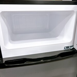 拝見した冷蔵庫は、外観に大きな傷や目立つへこみはなく、日常使用に伴う軽微なスレが見られる程度でした。庫内は棚・ドアポケット・冷蔵ケースともに揃っており、欠品はありません。冷蔵・冷凍ともに動作確認を行い、冷却状態も問題なく、全体として使用感の少ない状態と判断しました。