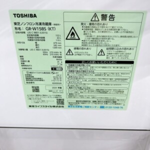 千葉県市原市へ東芝 冷蔵庫 GR-W15BS(KT)出張買取 2024年製で庫内状態良好のため適正価格で査定しました