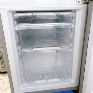 拝見した冷蔵庫は、外観に細かなスレや使用に伴う軽度の傷が見受けられましたが、目立つへこみや破損はありませんでした。庫内については棚板・野菜ケース・冷凍室引き出しなど付属パーツは一式揃っており、清掃状態も良好でした。冷蔵・冷凍ともに動作確認を行い、冷却機能に問題はなく、年式相応の状態と判断しています。