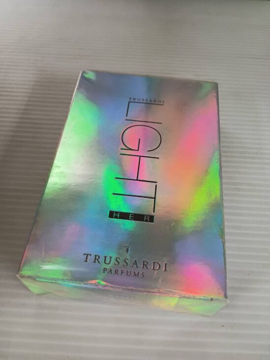 お預かりしたトラサルディ ライト ハーは、外箱付きで未開封の状態でした。外箱表面には保管時に付いたごく軽度なスレが見られましたが、破れや潰れはありません。シュリンクも残っており、ボトル本体は未使用のため、香水の変色や液漏れなども確認されない状態でした。