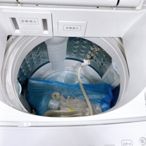 お引き取りしたAW-10DP2は、外装に目立つキズやへこみがなく、フタの透明パネルもくすみが少ないきれいな状態でした。槽内には購入時の付属品である給水ホースや排水ホースが袋に入ったまま保管されており、使用頻度が少なかったことがうかがえます。洗剤自動投入部や糸くずフィルターも清潔に保たれていました。