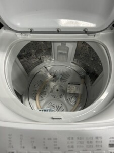 本体外装は使用に伴う細かなスレ傷や若干の汚れはありましたが比較的綺麗な状態を保っており、フタの開閉等はスムーズでした。槽内を確認したところ、ステンレス槽にサビや着色汚れは見られず、糸くずフィルターや給水ホースも揃っていました。動作の各工程を確認しましたが、異音や振動もなくコンディションの良いお品物と判断できました。