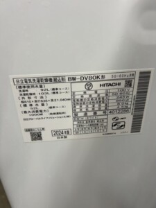 岐阜県大垣市 HITACHI BW-DV80K 縦型洗濯乾燥機 2024年製 きれいな状態のため適正価格で買取査定をしました
