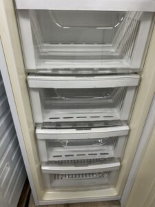 お預かりした冷凍庫は、前面ドアを中心に細かな擦れ跡や薄い汚れが見受けられ、全体として使用感のある状態でした。庫内の引き出しケースはすべて揃っており、破損や大きな割れはありません。冷却ファン周辺にも強い霜付きはなく、通電後すぐに庫内温度が下がることを確認しています。