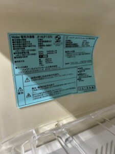 愛媛県宇和島市へ出張買取 ハイアール 冷凍庫 JF-NUF132G 2018年製 使用感ありのため適正価格で査定しました