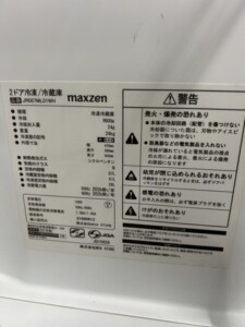 福井県福井市へ出張買取 maxzen 2ドア冷凍冷蔵庫 JR087ML01WH 2021年製 使用感は少ないため適正価格で査定しました