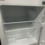 本体前面や側面に大きなキズやへこみは見られず、全体的に使用感は少ない良好な状態でした。庫内の棚板・ケース類もすべて揃っており、欠品はありません。冷蔵室・冷凍室ともに冷却動作に問題はなく、ニオイの残りもほとんど感じられませんでした。