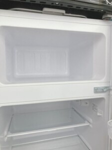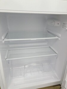 お買取した小型冷凍冷蔵庫は冷蔵室・冷凍室ともにしっかりと冷えることを確認でき温度調整ダイヤルの反応も良好でした。庫内のガラス棚やクリアケースに欠けはなく軽い擦れ程度で目立つ汚れや変色は見られず、外装にも大きな傷やへこみも無く、日頃から丁寧に使われていた事が伺えるコンディションでした。