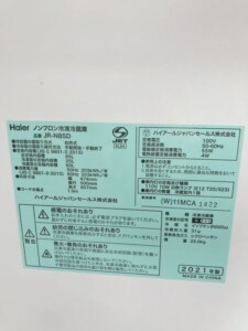 今回は東京都江東区にお住まいの50代主婦の方よりHaier ノンフロン冷凍冷蔵庫 JR-N85D(2021年製)を出張買取にてご依頼いただきました。