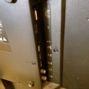 お預かりしたテレビは、通電後すぐに映像が映り、地デジ視聴や音声出力も問題ありませんでした。画面には大きな傷や表示ムラは見られず、フレーム部分に細かな擦れがある程度の使用感でした。背面端子部も破損はなく、純正リモコンが付属していた点も評価対象となっています。