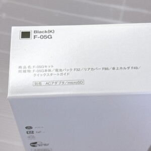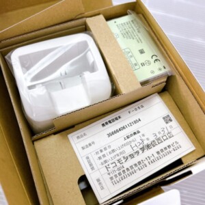 お買取した携帯ARROWSケータイ F-05Gは本体・リアカバー・電池パック・卓上ホルダ・クイックスタートガイドが揃った開封済み・未使用品でした。外箱も綺麗な状態で保護袋に入ったままの本体には目立つ傷や汚れは見受けられず、バッテリーも未装着のままでした。長期保管による劣化もほとんど感じられず動作確認でも問題なく起動する良好なコンディションでした。