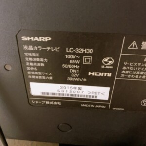 今回は愛知県あま市内にお住まいの50代男性よりシャープ液晶カラーテレビ LC-32H30(2015年製・32V型)を出張買取にてご依頼いただきました。先日新しい大型テレビへ買い替えをした為、処分をしたいとご相談を頂きました。