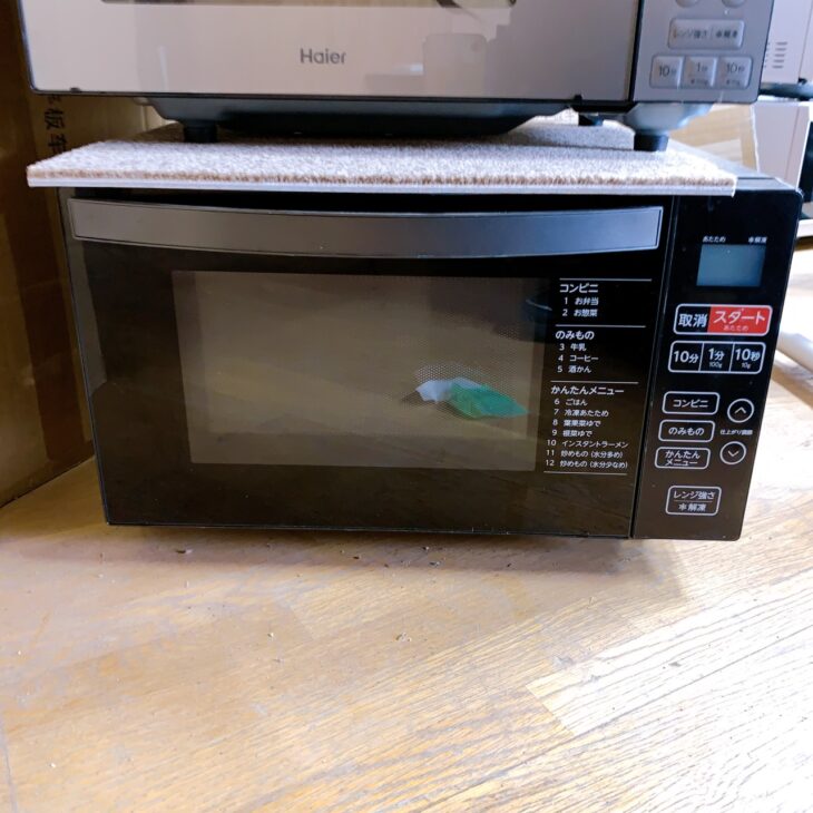 今回はLINEからのご依頼でお申し込みをいただき、事前に型番や外観の状態をお聞きしたうえで訪問しました。当日は現地にてレンジの状態を確認し、その場で動作チェックを実施。状態に問題がないことを確認して正式な査定金額をご案内しました。