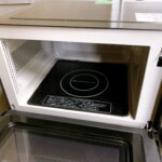 対象のレンジの庫内はフラット構造で、ガラスプレートの割れなどはなく、底面に細かな使用跡と拭き残しが見られる程度でした。操作パネルの表示、あたため・解凍の各モードも問題なくドアの開閉も正常でした。