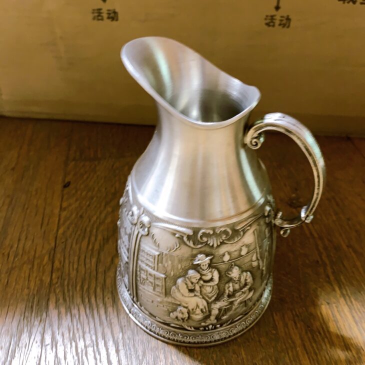 今回は愛知県清須市にお住まいの60代男性のお客様より、ARTINA SKS ZINN 95% ピューター製ピッチャーを出張買取にてご依頼いただきました。胴部分には人物が描かれたレリーフ装飾が施されており、底面には「ARTINA SKS ZINN 95%」の刻印が確認できるアイテムです。