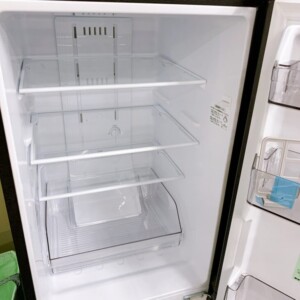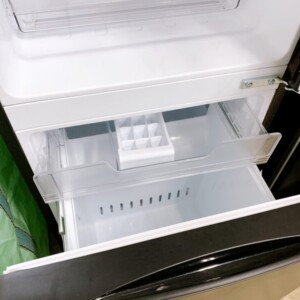 LINEから事前に冷蔵庫のお写真お送り頂け、冷蔵室・冷凍室ともに棚やケースに割れや欠けはなく、目立つ汚れも少ない事が確認できました。またドアポケットや製氷トレイも揃っており、におい残りも少ない状態です。通電確認では冷却動作も安定しており、日常使用に問題のないコンディションでした。