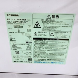 今回は愛知県津島市にお住まいの20代女性のお客様よりTOSHIBA東芝ノンフロン冷凍冷蔵庫 GR-W15BS(KT)(2024年製)を出張買取にてご依頼いただきました。