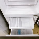 庫内は棚板やケースの欠品もなく、目立つ汚れやニオイも感じられない比較的きれいな状態でした。背面ラベルより2024年製、総容量135Lであることを確認しています。外装には設置時に付いたと思われる細かな擦れは見られましたが、全体的には良好なコンディションでした。
