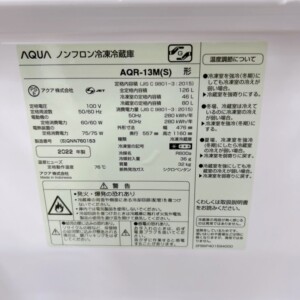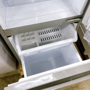 お預かりしたAQR-13M(S)は、外装・庫内ともに目立った傷や汚れが見られず、ドアのパッキン部分の劣化もほとんどありませんでした。冷却状態や庫内灯の点灯も確認でき、異音などもなく、全体的に良好な状態でした。付属の棚やトレー類もすべて揃っており、再販に適した内容でした。