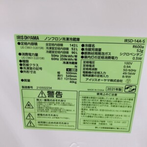 茨城県日立市アイリスオーヤマ 冷凍冷蔵庫 IRSD-14A-S きれいな状態のため適正価格で査定しました