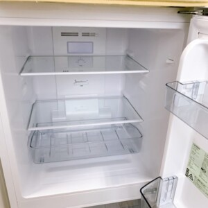 庫内はガラス棚・ドアポケットともにくもりやベタつきがなく、におい残りもほとんど感じられない清潔な状態でした。冷蔵・冷凍ともに動作確認を行い、冷却も問題ありません。外装には日常使用に伴うごく薄い擦れはあるものの、目立つヘコミや割れはなく、全体的に丁寧に使われていた印象でした。