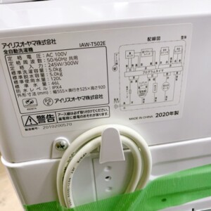 今回は鉾田市の持ち家(一戸建て)にお住まいの30代女性・主婦のお客様より、アイリスオーヤマ 全自動洗濯機 IAW-T502E(2020年製)を出張買取にてご依頼いただきました。洗濯容量5.0kgで一人暮らしや少人数世帯に使いやすいモデルです。