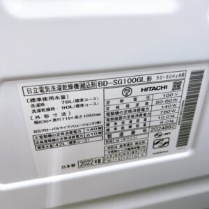BD-SG100GLは「ビッグドラム」シリーズの中でも10kgクラスの使い勝手の良いモデルで、中古市場でも安定した需要があります。年式が2022年製と比較的新しく、付属品完備で状態も良好だったことから、当社では22,000円での買取となりました。