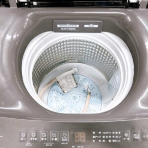 お引き取りした洗濯機は外装に細かな擦り傷やフタ周辺に使用に伴うくすみが見られるなど、全体的に使用感のある状態でした。洗濯・脱水・給水・排水といった基本動作は問題なく、操作パネルの表示も正常に確認できました。糸くずフィルターなどの付属パーツも揃っており、内部に強いにおい残りはありませんでした。