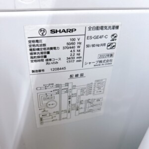 沖縄県浦添市 SHARP 全自動電気洗濯機 ES-GE4F-C 4.5kg 2022年製買取 綺麗な状態のため高評価して査定しました