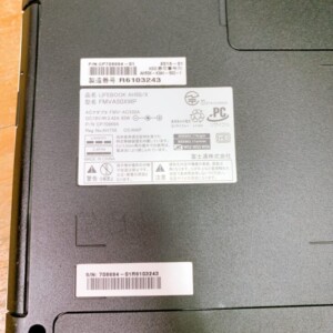 お預かりしたLIFEBOOK AH50/Xは、天板やパームレストに目立つキズや割れは見られず、全体的に清潔感のある状態でした。キーボードの文字消えやテカリも少なく、電源投入後の起動や各種キー入力も問題なく確認できました。バッテリーは年式相応の消耗はあるものの、ACアダプターを使用すれば通常利用に支障はありませんでした。