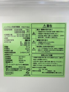 京都府城陽市へ出張買取 REFAGE ノンフロン冷凍冷蔵庫 YRZ-F15LK(2024年製)156L 美品のため適正価格で査定しました