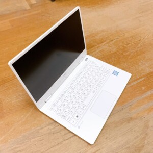 お預かりしたPC-NM550KAWは、天板や底面に使用に伴う細かな擦り傷が見られましたが、割れや大きなへこみはなく、全体として丁寧に扱われていた印象でした。液晶の表示、キーボードの反応、タッチパッドの動作も良好で、起動確認も問題ありません。ACアダプターが付属しており、すぐに再利用できる状態でした。