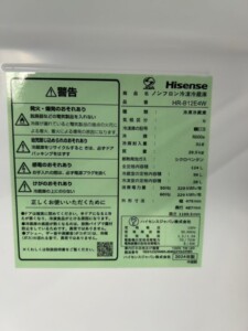 熊本県熊本市 ハイセンス HR-B12E4W 冷凍冷蔵庫 目立つ傷のない美品を出張買取しました