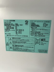 今回は兵庫県加東市にお住まいの30代男性の方よりハイアールノンフロン冷凍冷蔵庫 BR-85A(2024年製)を出張買取にてご依頼いただきました。単身用として使われていたとの事で引っ越しを機に不要になった為、お買取ご相談を頂きました。