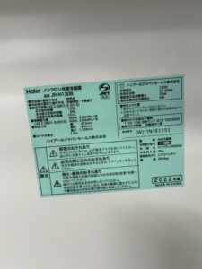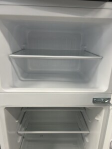 お預かりした冷蔵庫は外装に目立つキズやへこみはなく、白いボディの艶も十分に残っていました。庫内のガラス棚、野菜ケース、冷凍室トレイもすべて揃っており、黄ばみやニオイも見受けられません。冷蔵・冷凍ともにしっかり冷えており、温度調整ダイヤルの反応も良好でした。製造ラベルから2021年製と確認でき、比較的新しいモデルである点も評価につながりました。