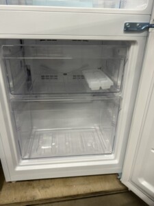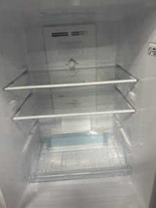 拝見した冷蔵庫は庫内のガラス棚、ドアポケット、クリアケース、製氷トレーまで一式そろっており欠品はありませんでした。冷蔵室・冷凍室ともに動作確認を行いましたが、冷え具合は安定しており異音もありません。外装も目立つへこみや大きな傷はなく、使用感の少ないきれいな状態が保たれていました。
