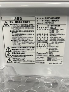 群馬県藤岡市 ニトリ 2ドア冷凍冷蔵庫 NTR-140WH きれいな状態のため適正価格で出張買取しました