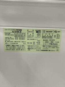 群馬県富岡市 シャープ SJ-D18K-W 冷蔵庫買取 きれいな状態のため適正価格で査定しました