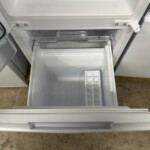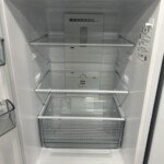 庫内のガラス棚や野菜ケース、冷凍室の引き出し、製氷トレーなど付属パーツは一式そろっており、庫内に目立つ汚れやニオイもありませんでした。外装にも大きなキズやヘコミは見られず、動作確認でも冷却・霜取り機能ともに問題のない良好な状態でした。
