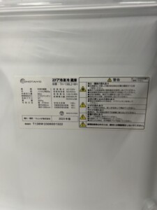 今回は群馬県沼田市にお住まいの30代男性・会社員・単身・賃貸(アパート)のお客様より、TOHOTAIYO 2ドア冷凍冷蔵庫 TH-138L2-WH(2023年製)を出張買取にてご依頼いただきました。
