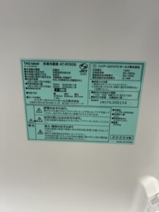 今回は広島県東広島市にお住まいの20代・男性・学生・単身・賃貸(アパート)のお客様より、TAG label 冷凍冷蔵庫 AT-RF85B(2020年製)を出張買取にてご依頼いただきました。
