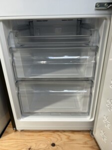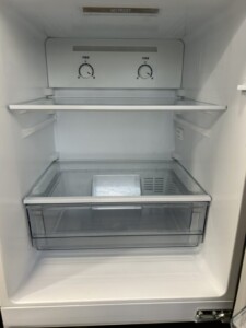 お預かりした冷蔵庫は外装に目立つ大きな傷やへこみはなく、庫内も清潔感のある状態でした。棚板やケース類、製氷トレーなどの付属品も揃っており、動作確認でも冷蔵・冷凍ともに問題なく稼働していました。ドアポケットの割れやパッキンの劣化も見られず、再販しやすいコンディションです。