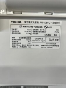 香川県三豊市で東芝 全自動電気洗濯機 AW-10DP2を出張買取 2022年製で状態良好のため高価査定