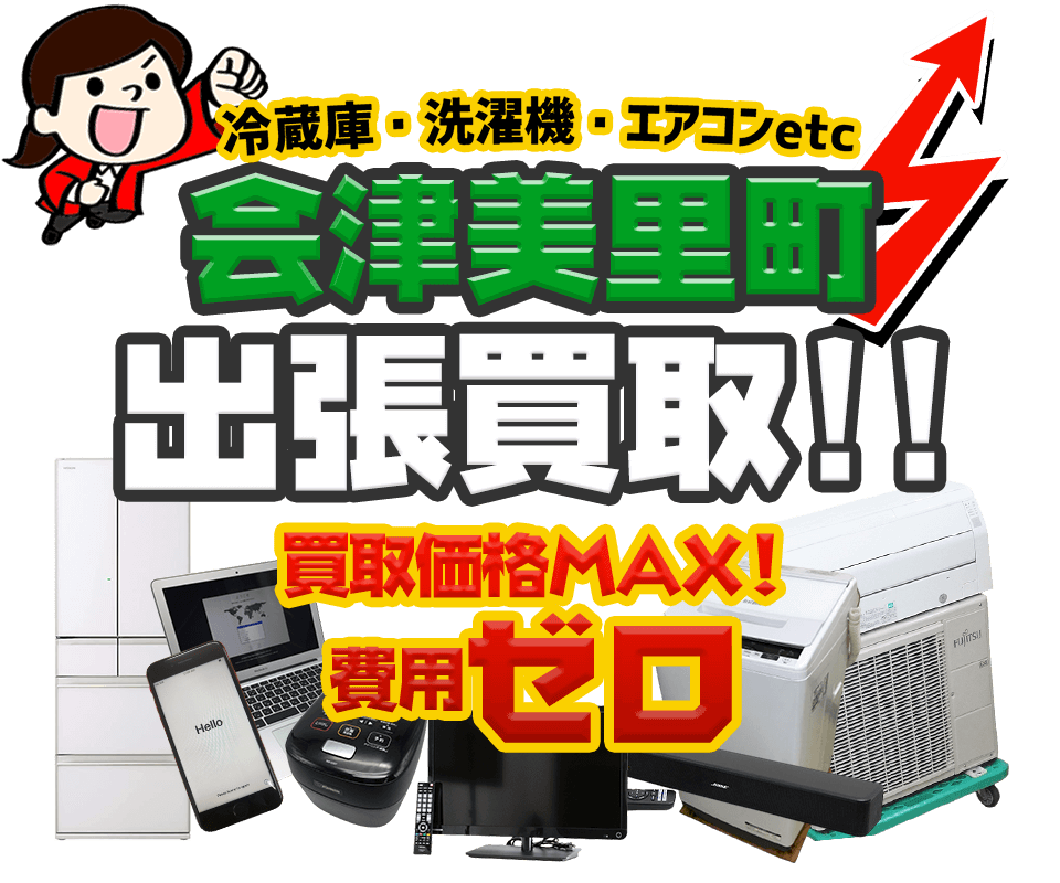 当店では福島県会津美里町(高田・本郷・新鶴エリアなど)を中心に無料出張買取を行っております。リサイクル可能なお品物なら、取り外しから運搬までスタッフが迅速に対応。大きな品物や重たい家電も安心してお任せいただけます。万が一、他店で引き取りを断られてしまった家電や不用品も、お客様にとって最適なリサイクル方法をご提案いたします。
