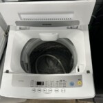外装はホワイトカラーで、目立つキズや黄ばみはほとんど見られず、操作パネルの文字もはっきり残っていました。槽内は黒カビや強いニオイもなく、給水ホース・排水ホースなどの付属品も揃っており、すぐに再販できる良好なコンディションでした。