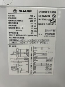 今回は神埼市内の賃貸アパートにお住まいの40代女性・主婦・親子世帯のお客様より、SHARP 全自動洗濯機 ES-GV8J-N(2024年製)を出張買取にてご依頼いただきました。