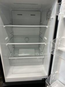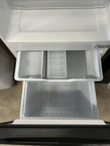 お預かりした冷蔵庫は、外装に軽微な擦れ跡がある程度で、ブラックカラー特有の目立ちやすいキズはほとんど見られませんでした。庫内のガラス棚やドアポケット、製氷皿も揃っており、冷蔵・冷凍ともに冷却性能に問題はありませんでした。